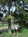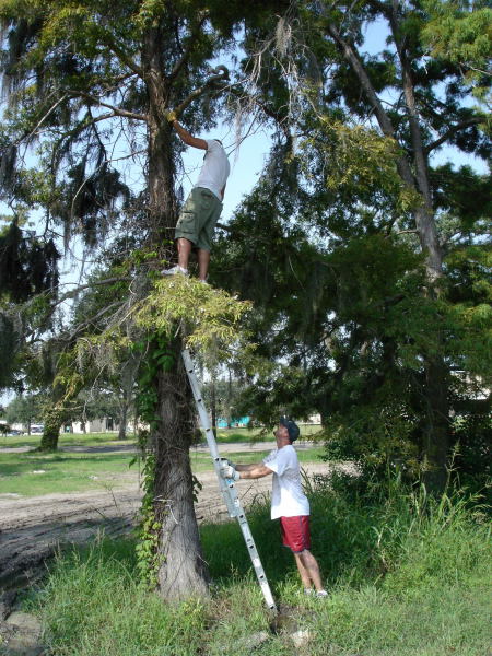 Another 20 foot job with an 8 foot ladder. Oh, one more complication. Leaves of three let it be. David was supposedly less allergic to poison ivy. |